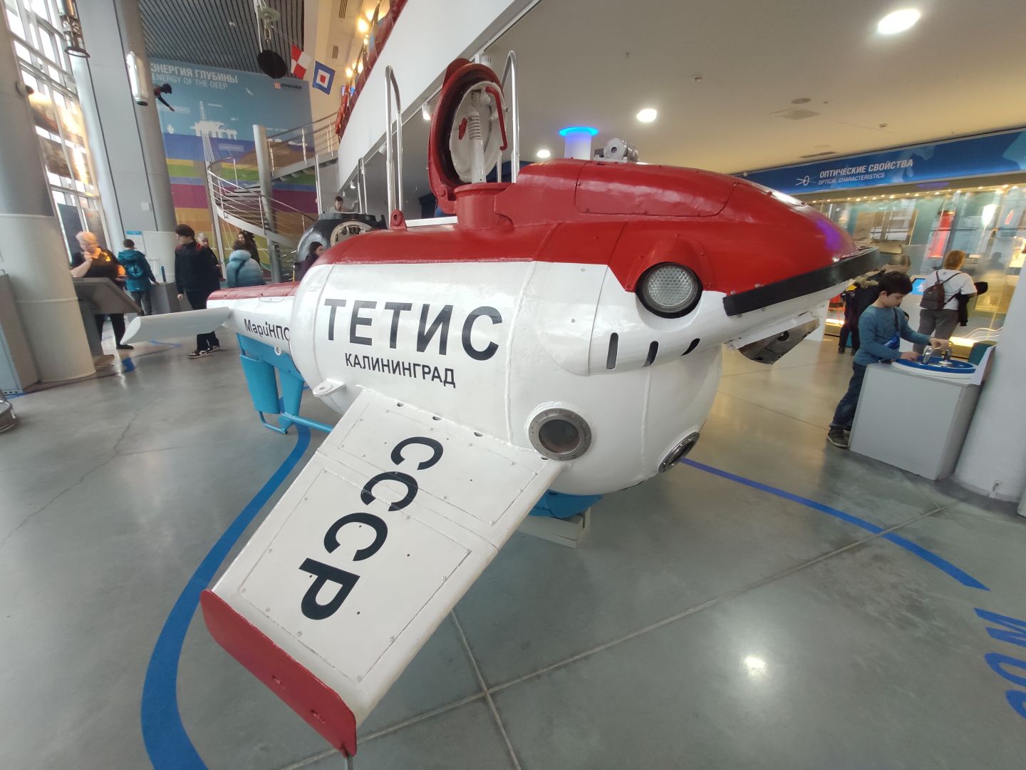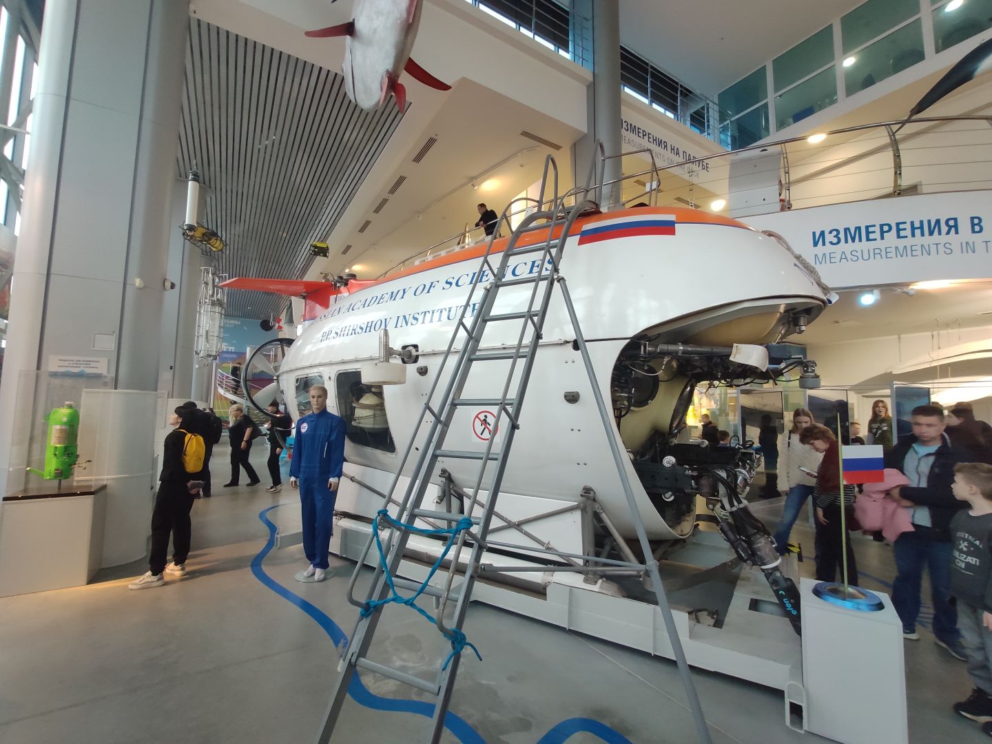 Центр экспозиции — это реальные глубоководные аппараты, каждый из которых был настоящим рабочим инструментом науки.