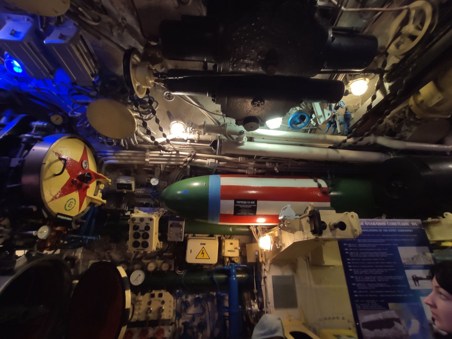 · Первый отсек: торпедный зал. Тот самый, откуда лодка наносила свой главный удар. Стальные торпеды лежат на стеллажах, как спящие хищники. Аппараты нацелены в нос. Стоишь там и понимаешь: это не экспонат, а оружие, которое могло стрелять. И в этом отсеке, несмотря на его размер, царила строжайшая дисциплина — одно неверное движение могло стоить жизни всем.