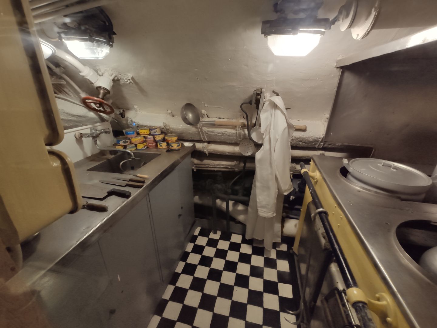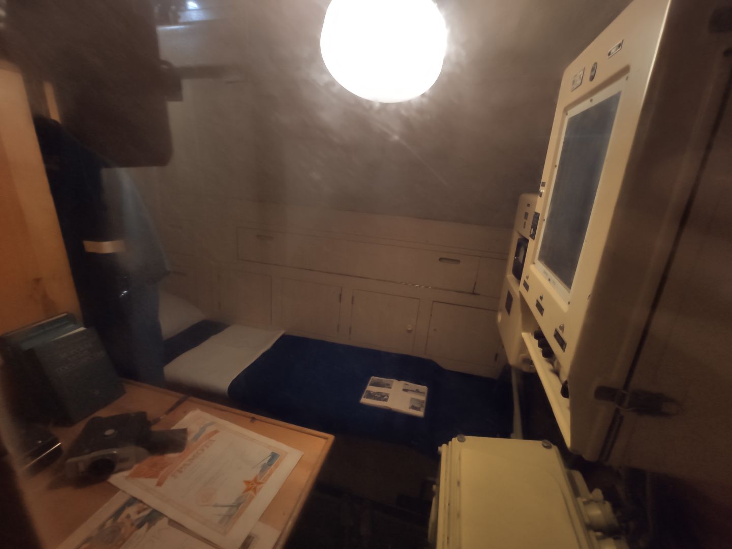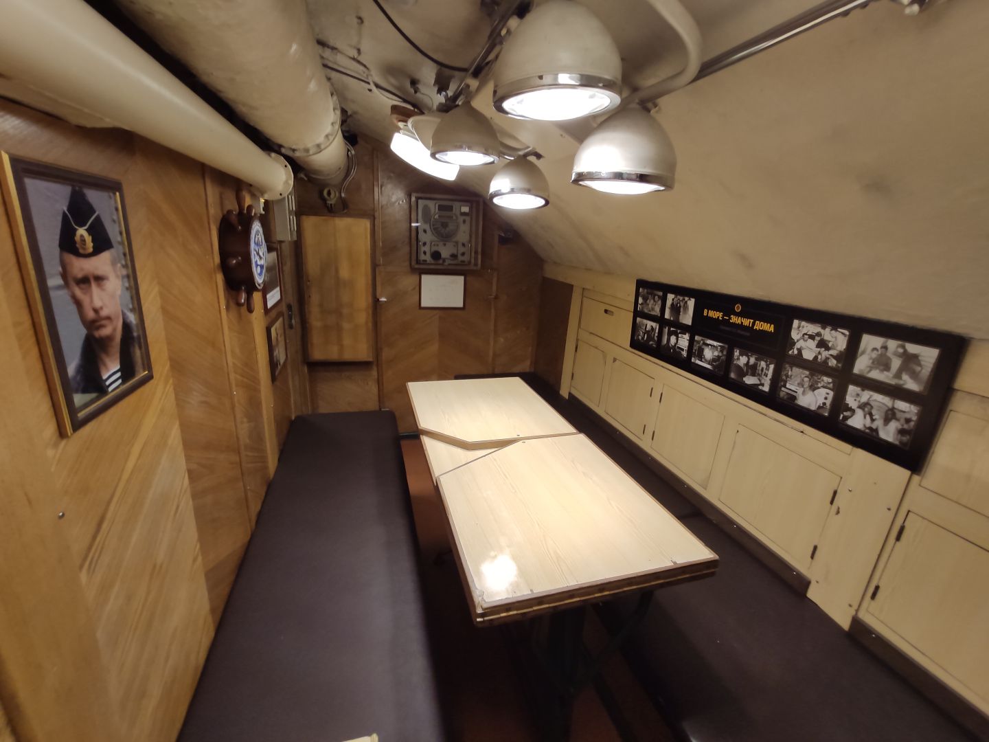 · Каюты и камбуз: жизнь в каморках. Каюты офицеров — это крошечные комнатки с железными койками и откидными столиками. Камбуз (кухня) размером с современный шкаф. Да, в каютах можно сидеть и лежать, но не сделать и пары шагов. Вся жизнь подводника — в этих железных отсеках, где нет личного пространства, где каждый сантиметр работает на выживание и выполнение задачи.