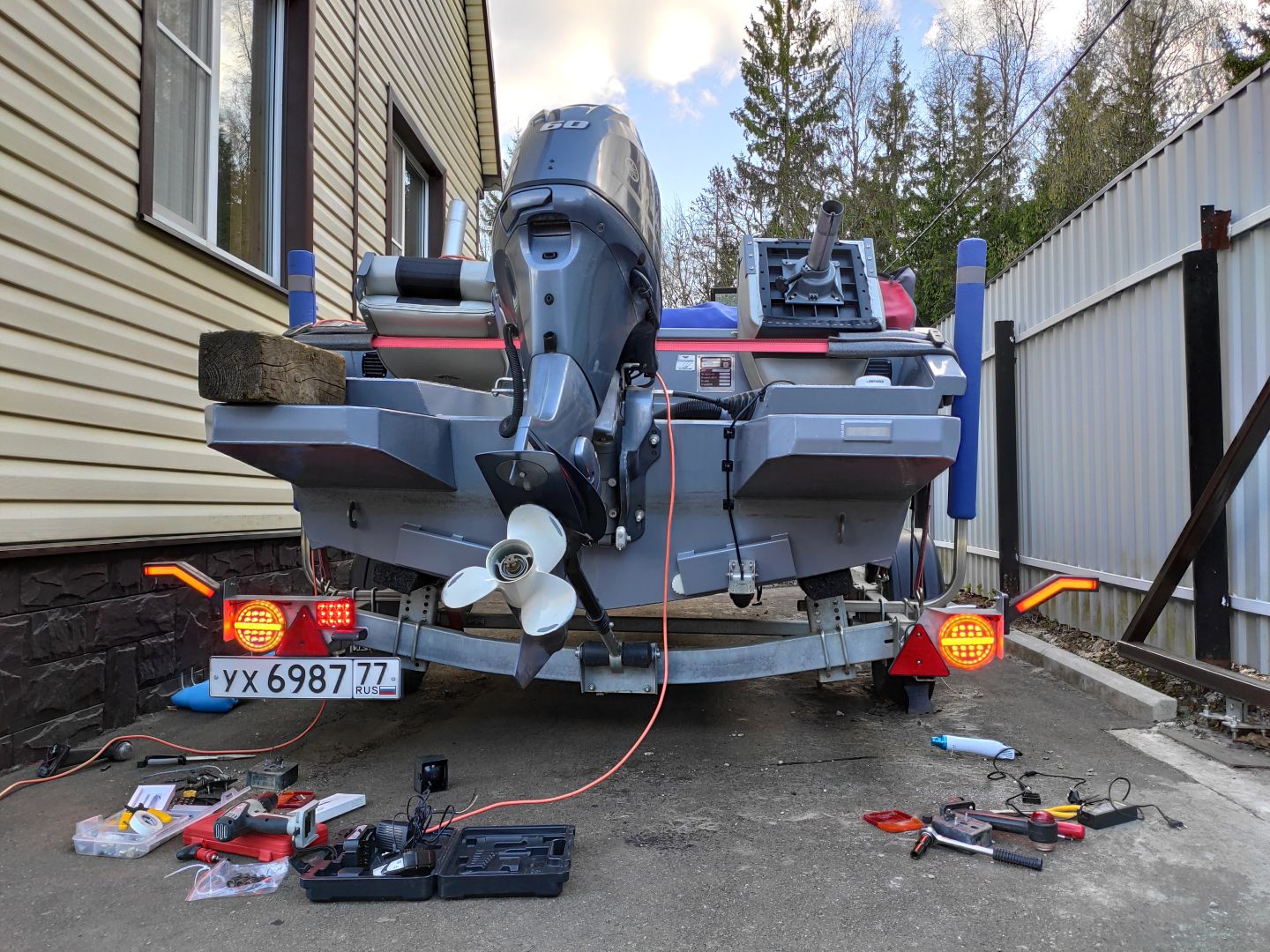И прицеп не забыл. Родные фонари были никакие. Снял их, поставил герметичные диодные блоки. Тоже всё сам.