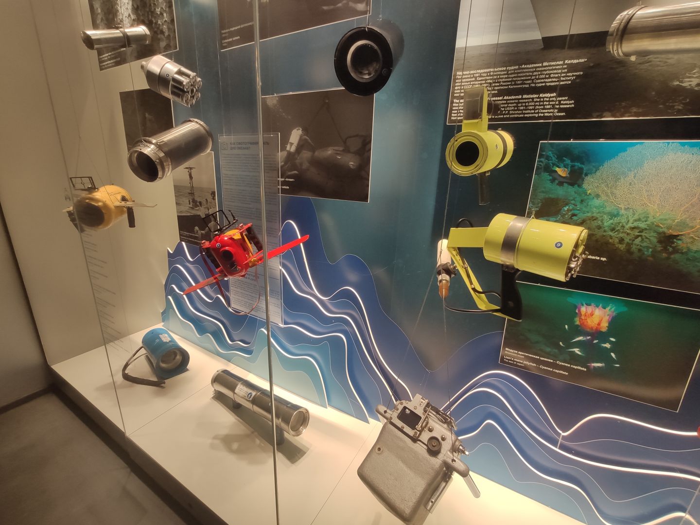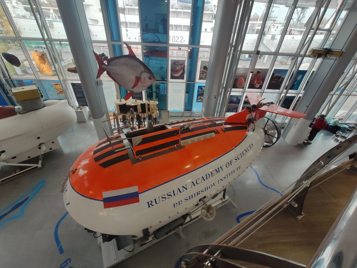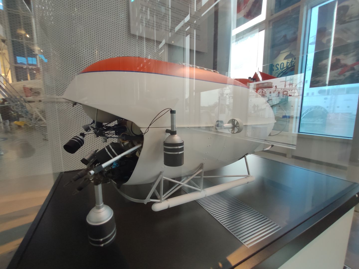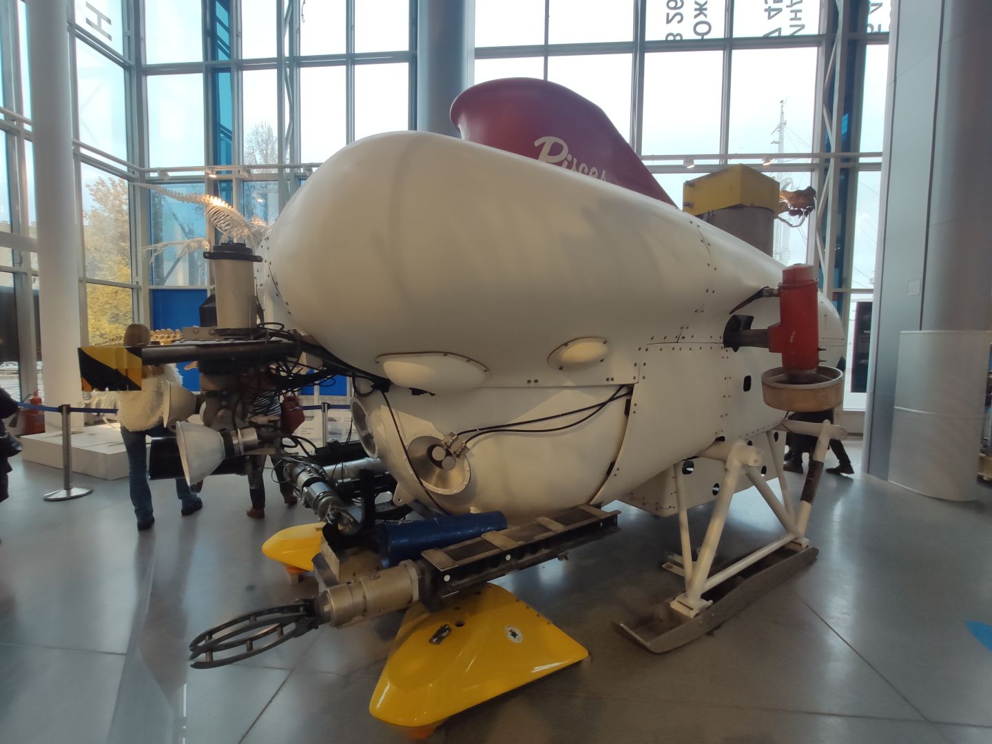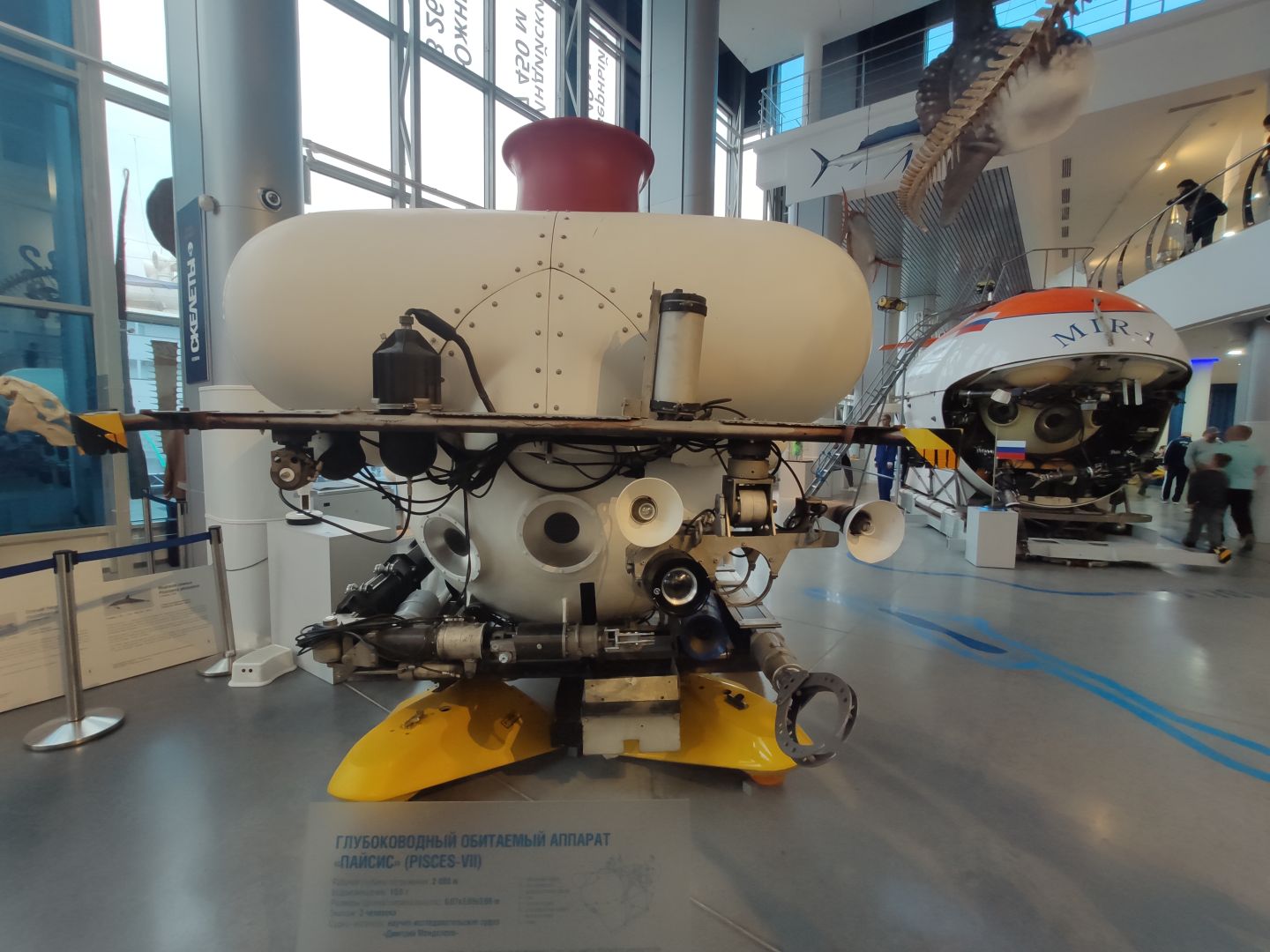 Центр экспозиции — это реальные глубоководные аппараты, каждый из которых был настоящим рабочим инструментом науки.