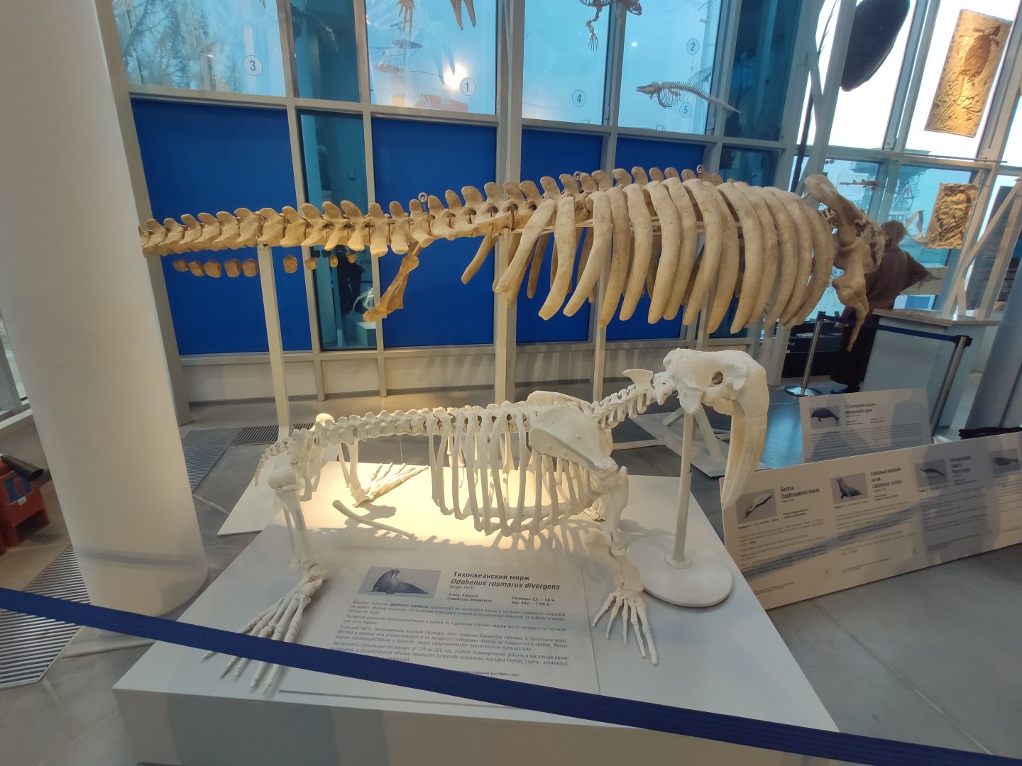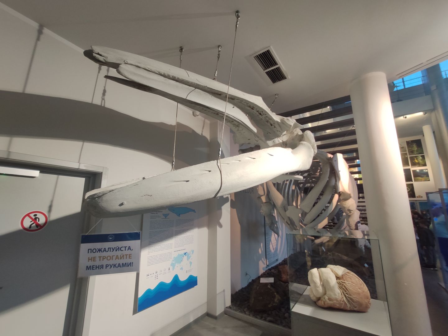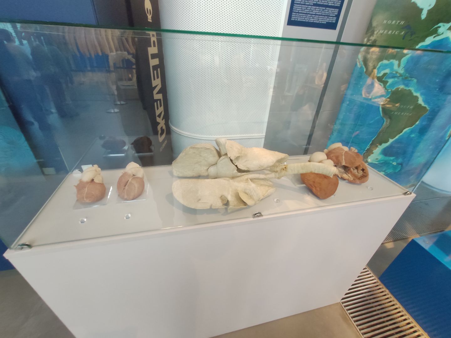 · Скелет кашалота. Этот 15-метровый гигант, парящий под потолком, — ключевая фигура. Кашалоты — одни из немногих млекопитающих, регулярно погружающихся на глубины свыше 2000 метров для охоты на гигантских кальмаров. Он символизирует связь поверхности и бездны.