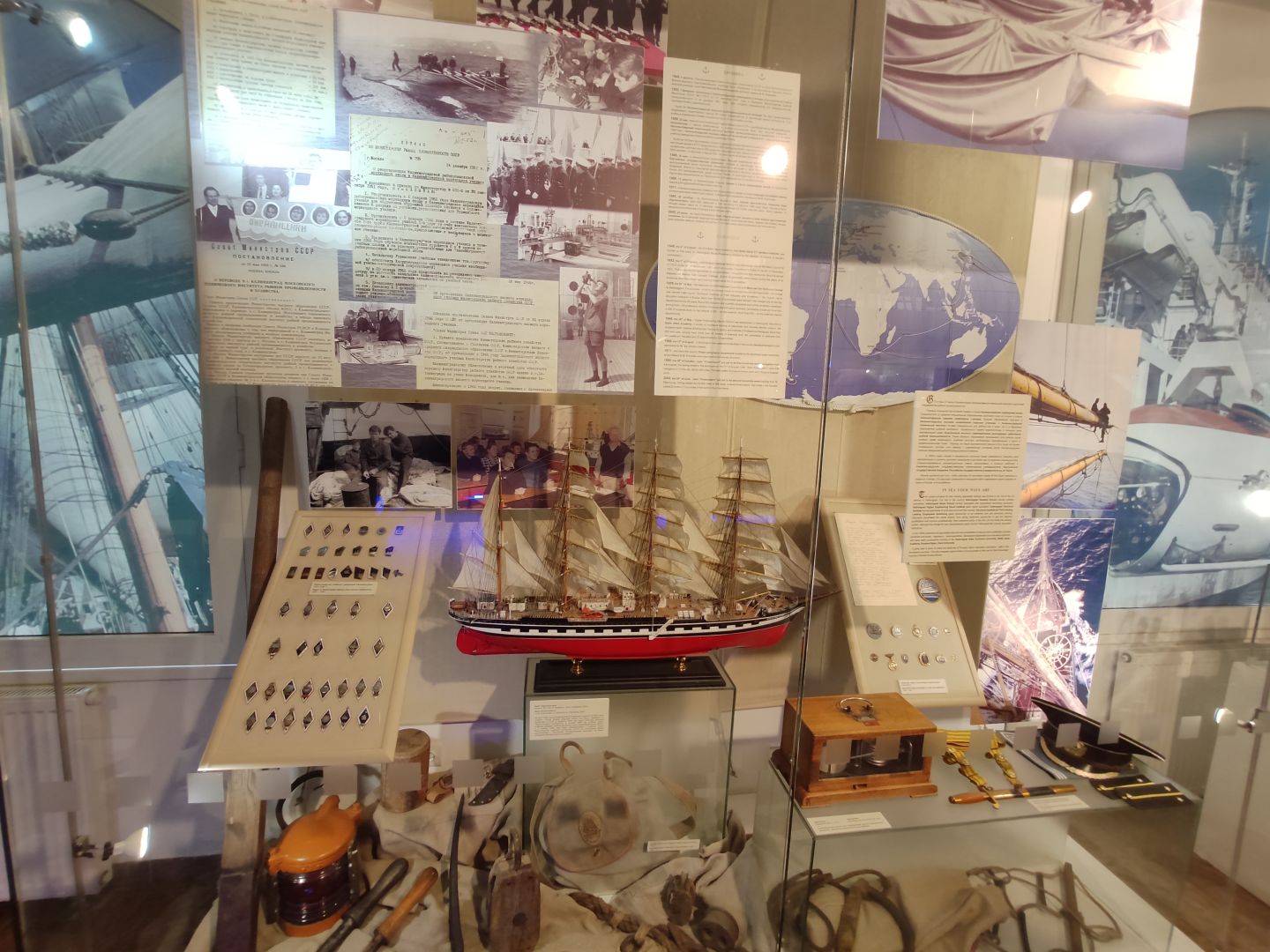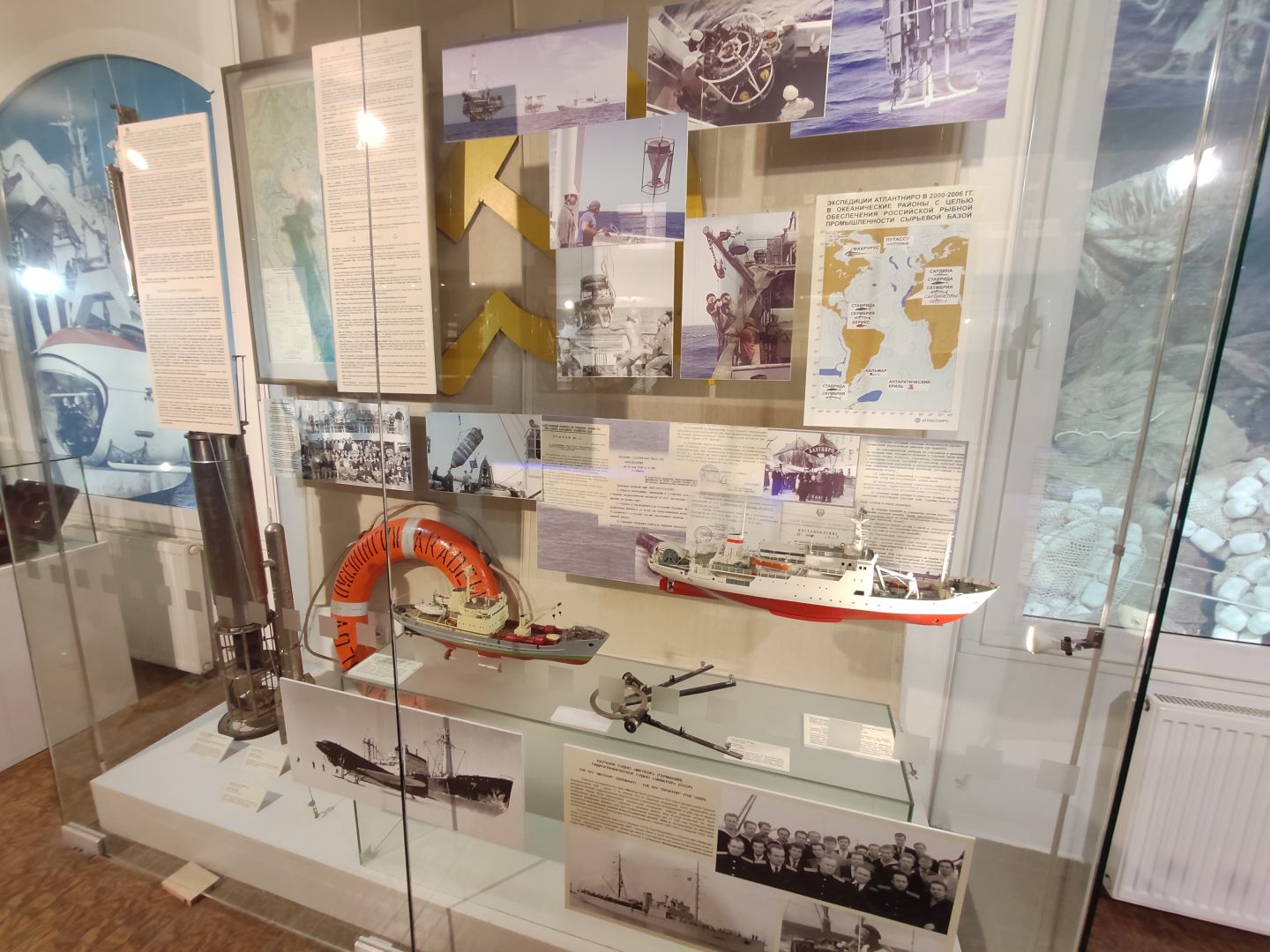 · Быт и навигация: В витринах — ручные компасы и секстаны, по которым штурман прокладывал курс. Кубки, фотографии и личные вещи напоминают, что рыбаки были не просто рабочей силой, а людьми с их судьбами, радостями и тяготами долгой разлуки с домом.