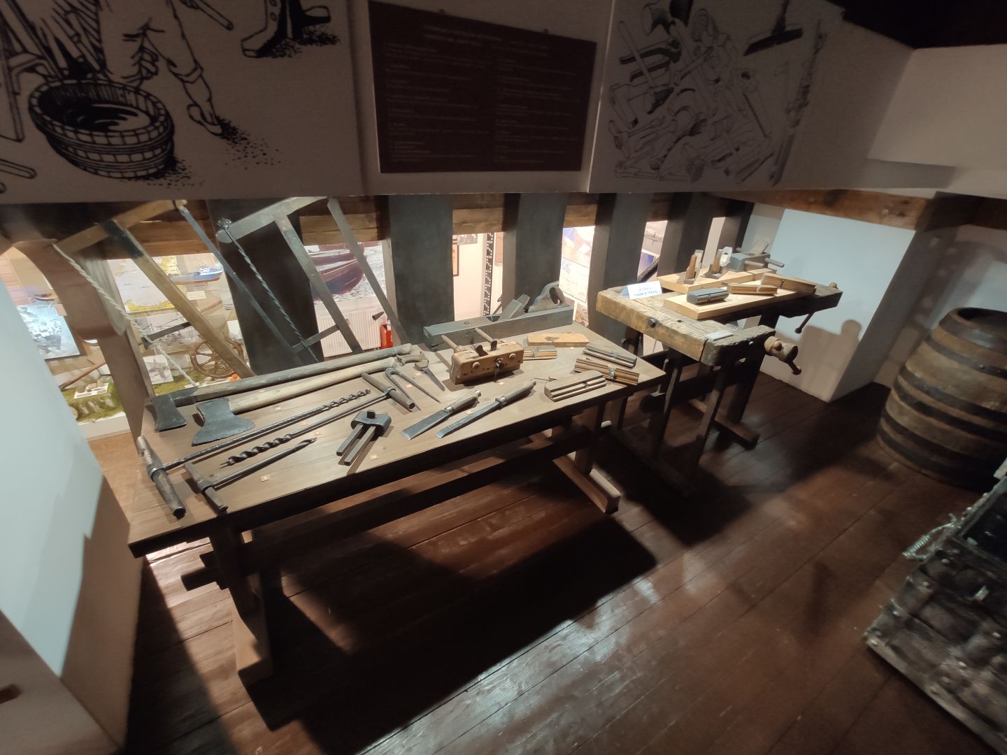 · Орудия лова: Здесь можно увидеть те самые сети и невода, которые рыбаки закидывали в море в любую погоду. Рядом лежат иглицы и челноки — простые, но жизненно важные инструменты для ремонта порванных снастей. Эта работа требовала невероятного терпения и сноровки.