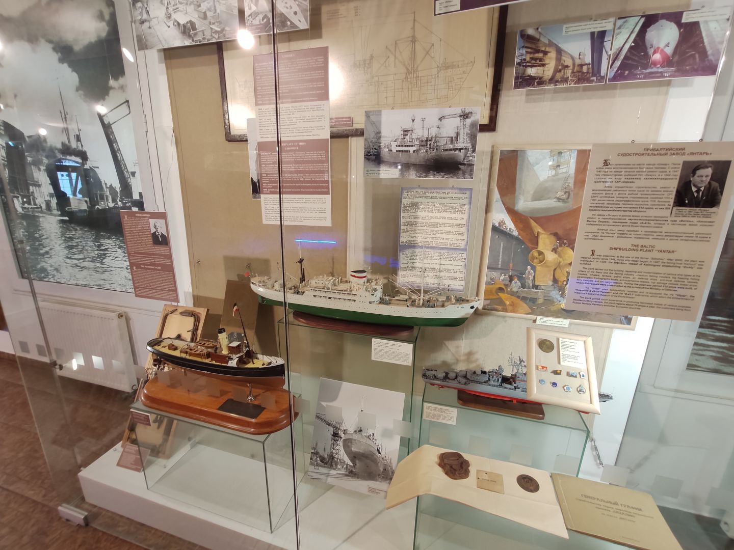 Все вокруг остова рассказывает о жизни, которая кипела на таких ботах. Экспозиция «Люди моря» — это собрание подлинных предметов послевоенных десятилетий.