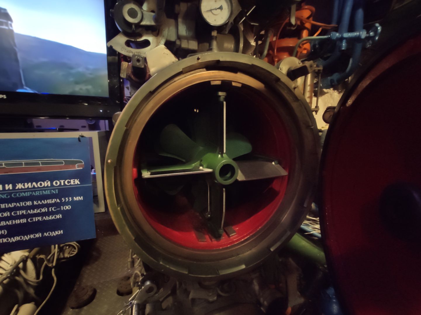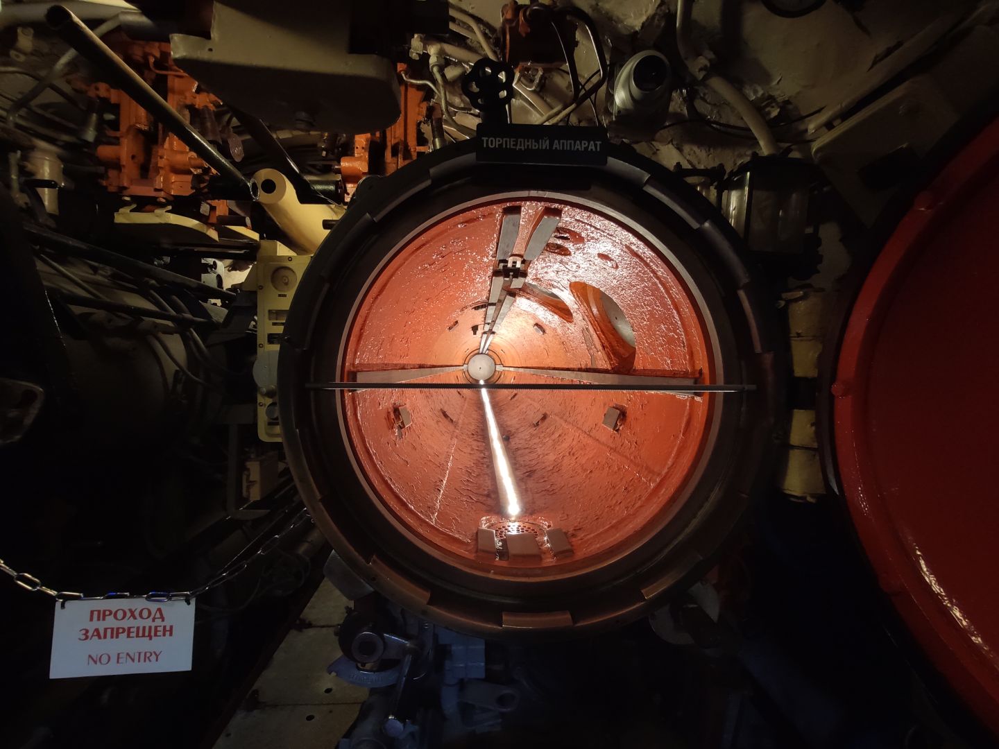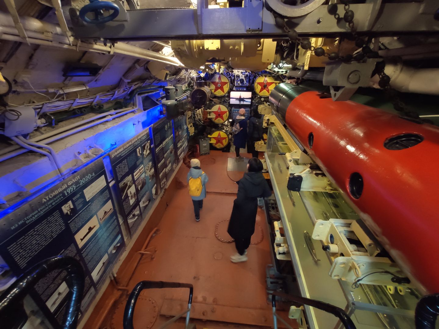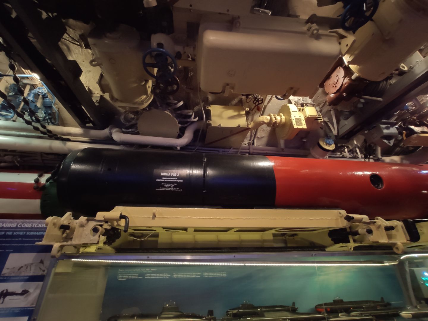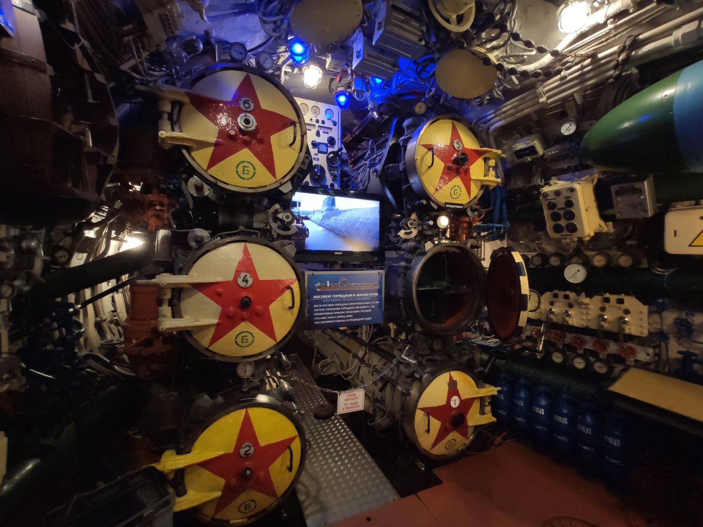 · Первый отсек: торпедный зал. Тот самый, откуда лодка наносила свой главный удар. Стальные торпеды лежат на стеллажах, как спящие хищники. Аппараты нацелены в нос. Стоишь там и понимаешь: это не экспонат, а оружие, которое могло стрелять. И в этом отсеке, несмотря на его размер, царила строжайшая дисциплина — одно неверное движение могло стоить жизни всем.