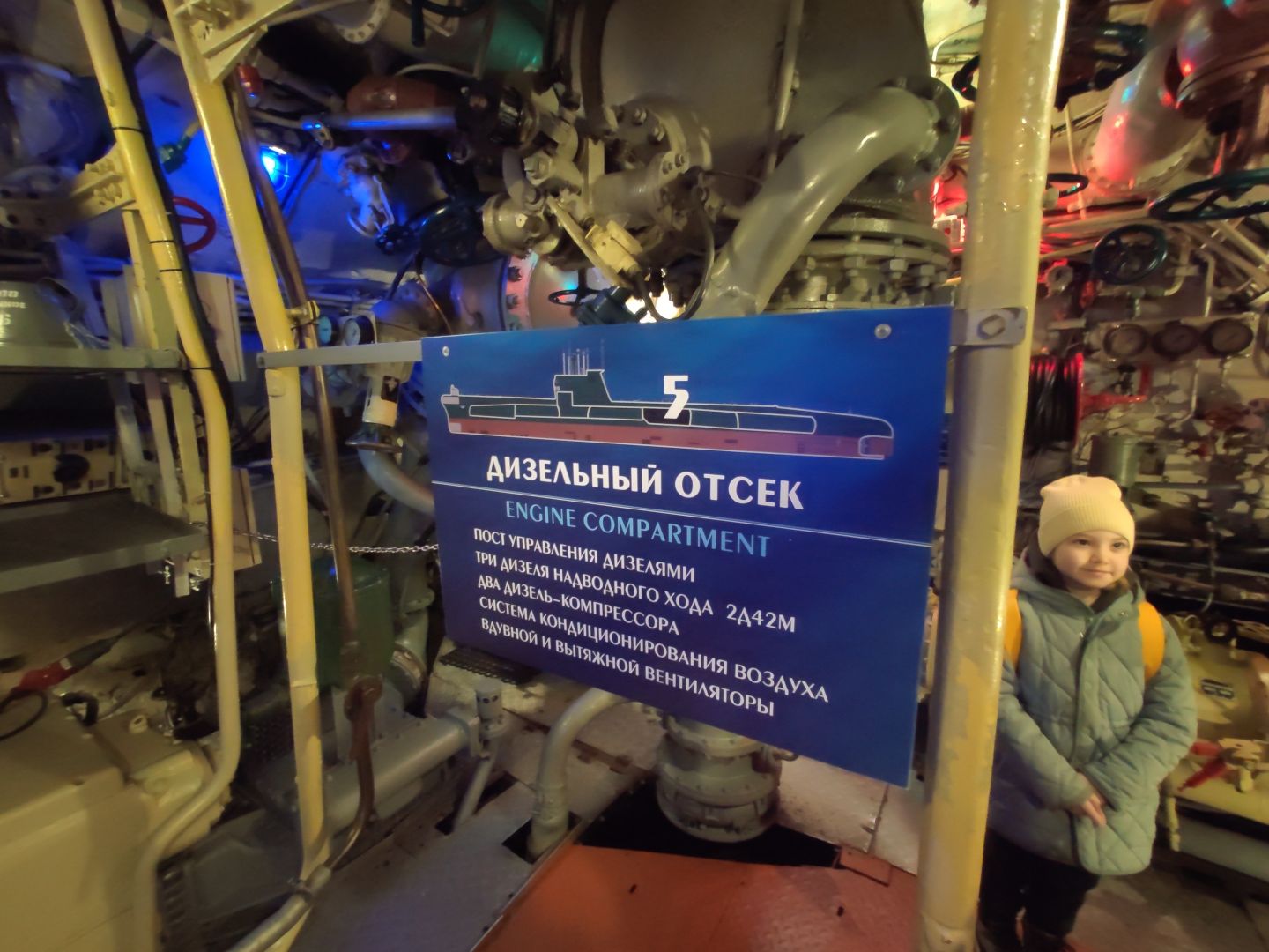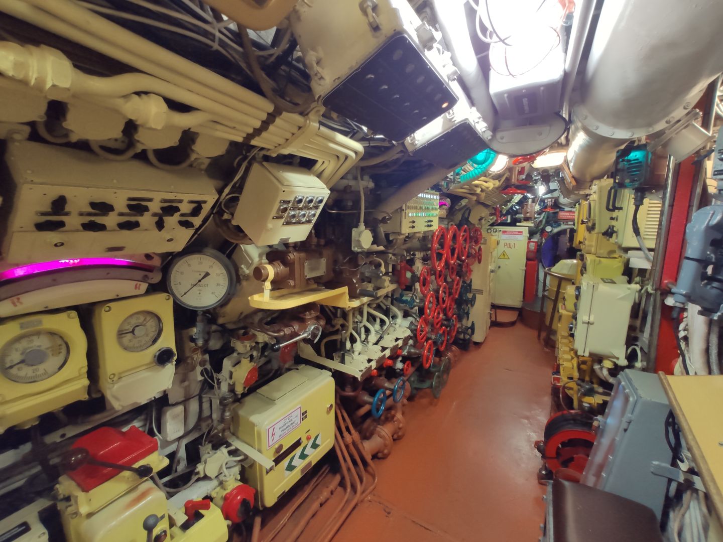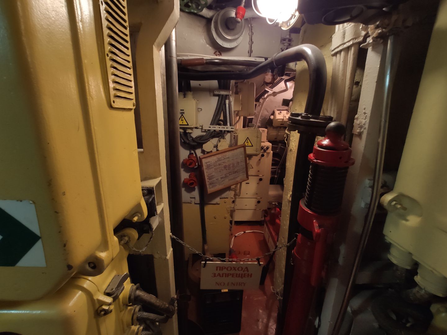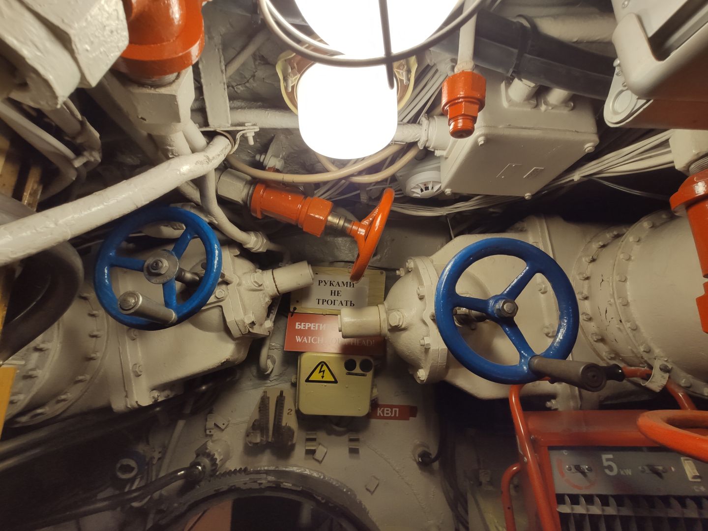 · Дизельный отсек: сердце, которое стучит. Спускаешься сюда — и попадаешь в царство механиков. Два огромных дизеля, которые давали лодке ход и заряжали аккумуляторы. Представьте этот гул в замкнутом пространстве! Рядом — гигантские электромоторы для бесшумного подводного хода. Высота позволяет стоять, но воздух наполнен памятью о машинном масле и напряженной работе.