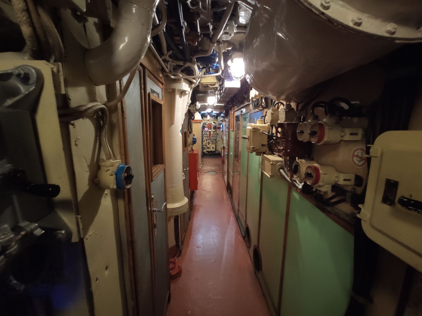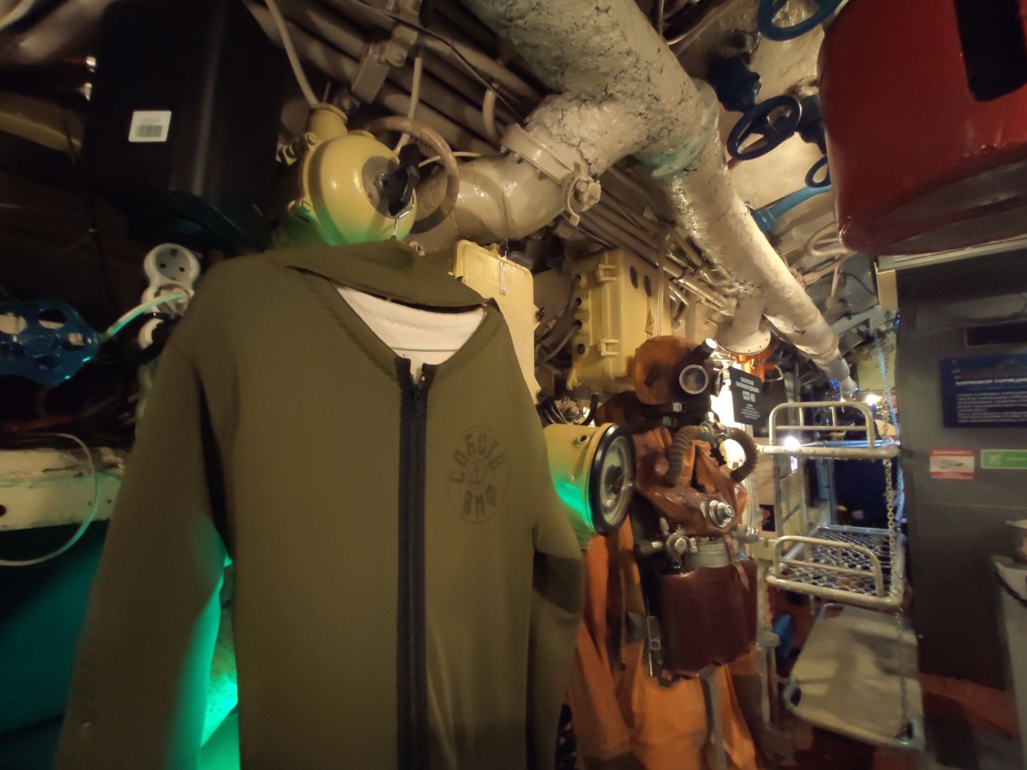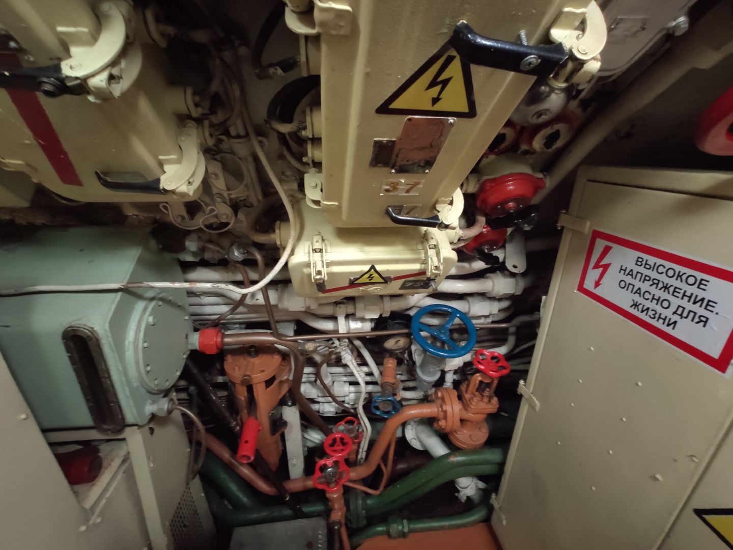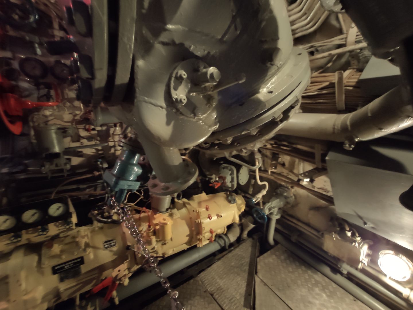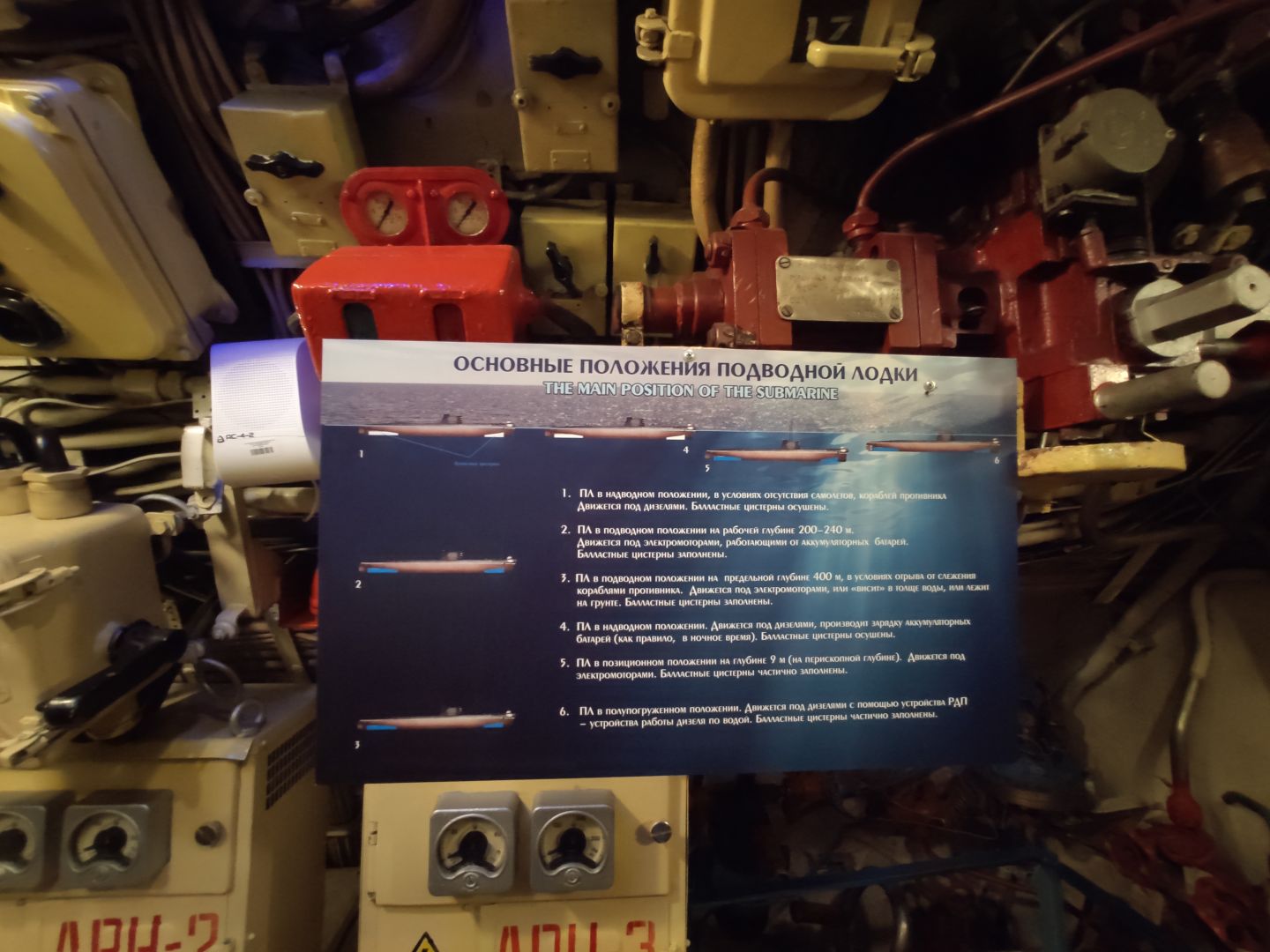· Дизельный отсек: сердце, которое стучит. Спускаешься сюда — и попадаешь в царство механиков. Два огромных дизеля, которые давали лодке ход и заряжали аккумуляторы. Представьте этот гул в замкнутом пространстве! Рядом — гигантские электромоторы для бесшумного подводного хода. Высота позволяет стоять, но воздух наполнен памятью о машинном масле и напряженной работе.