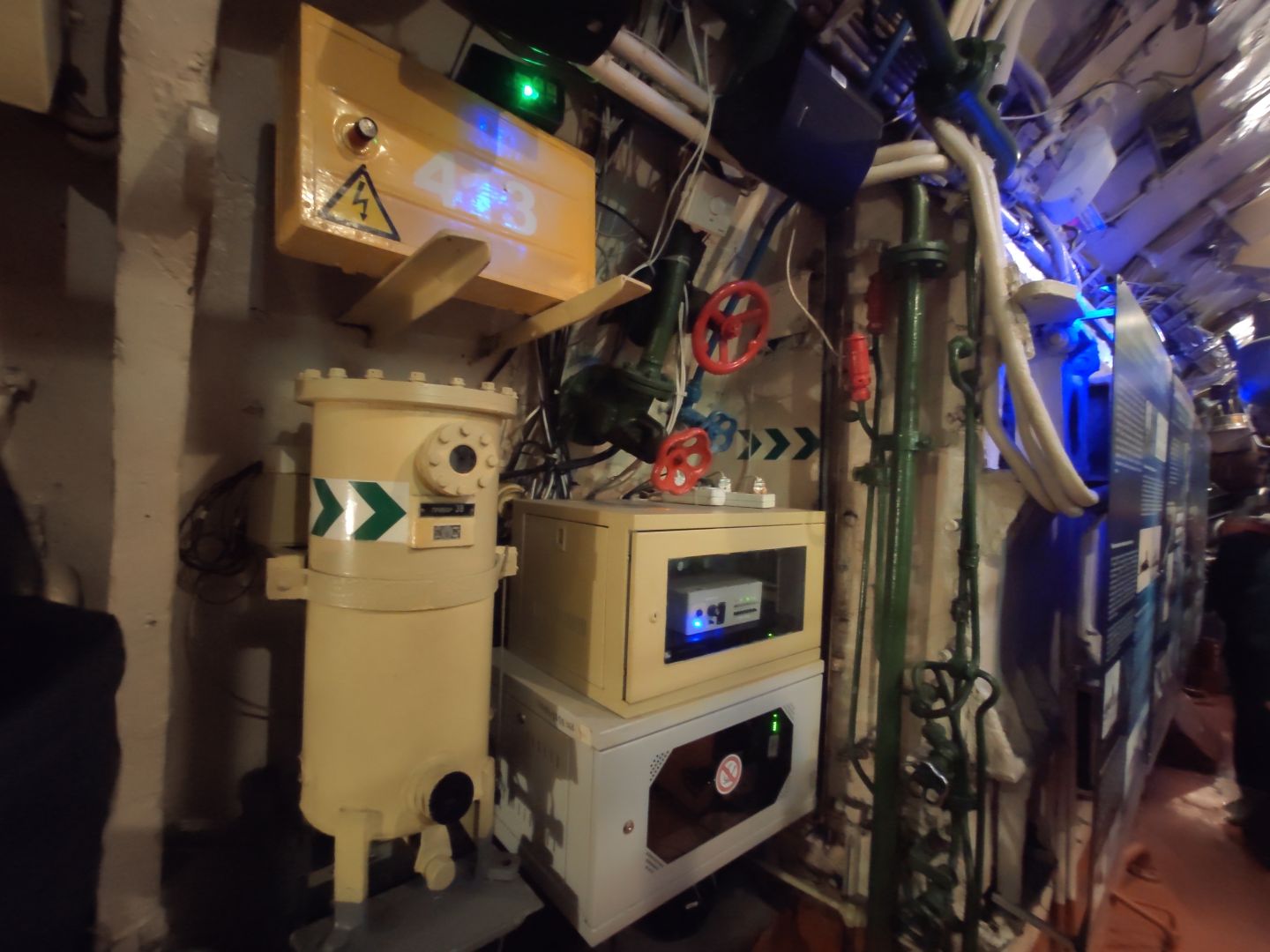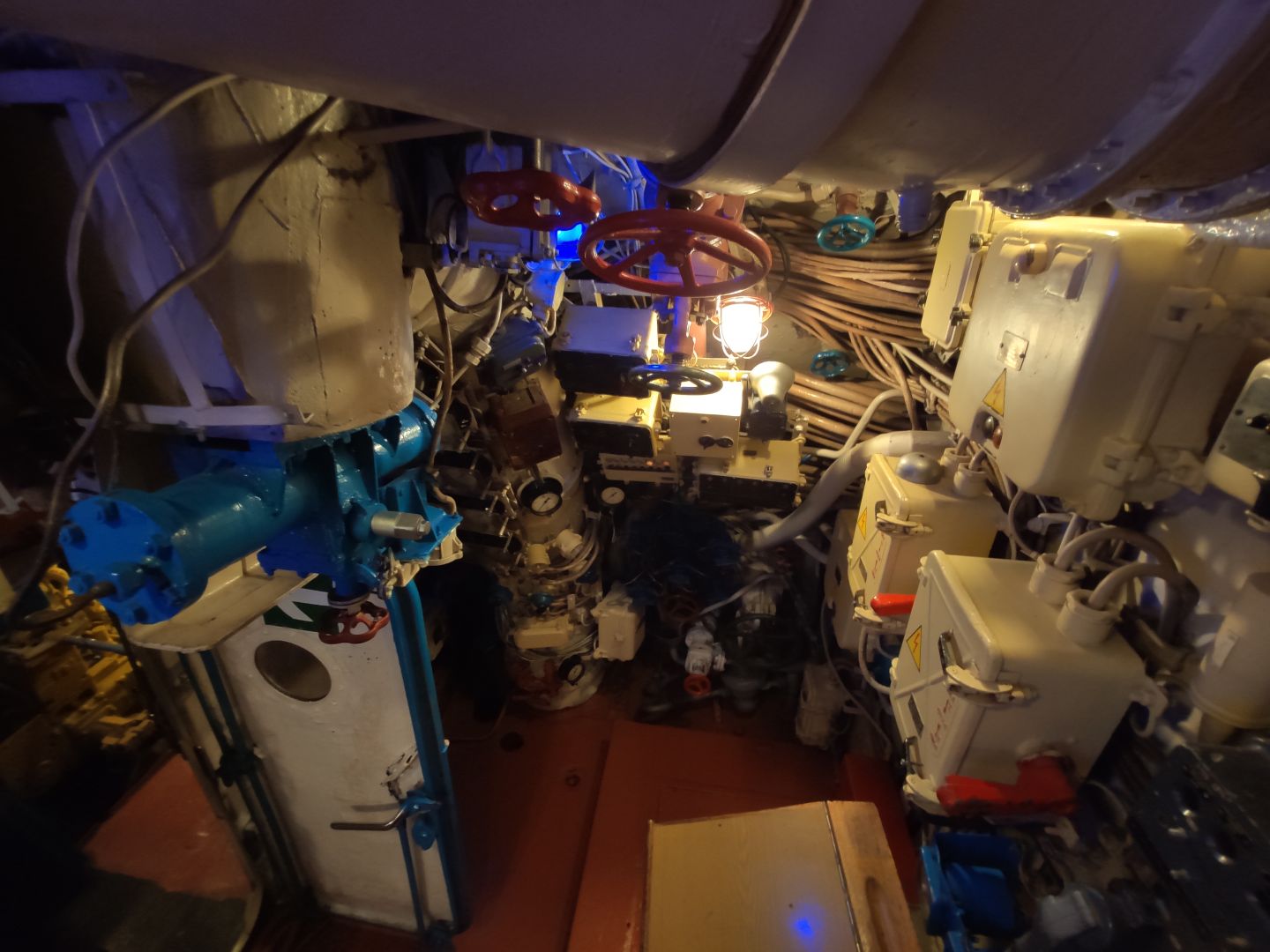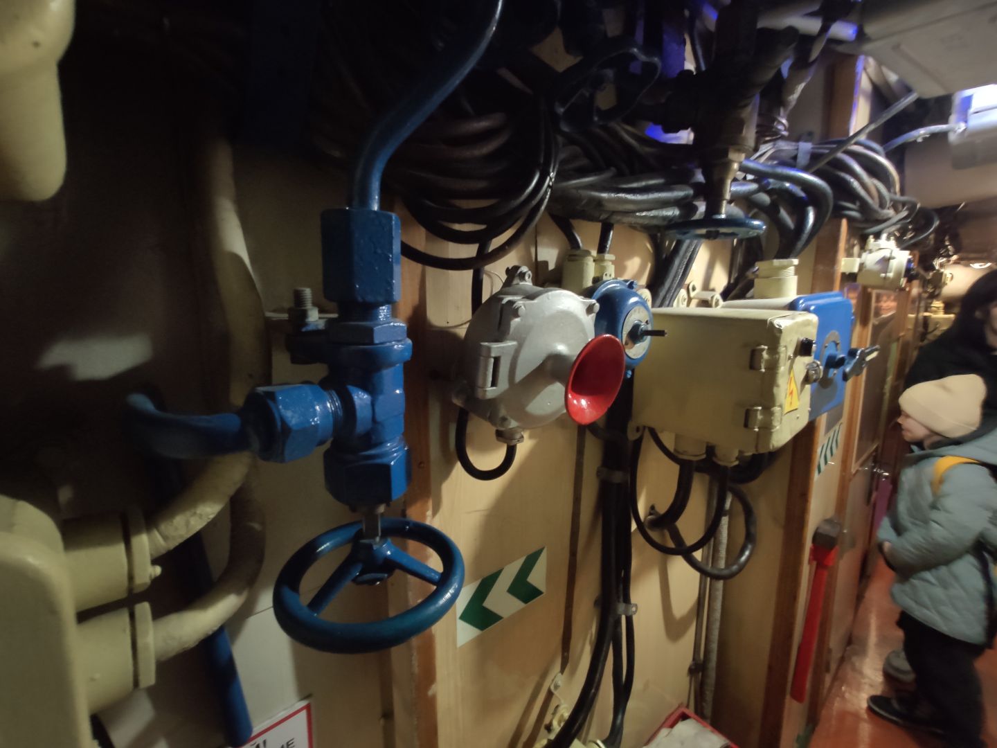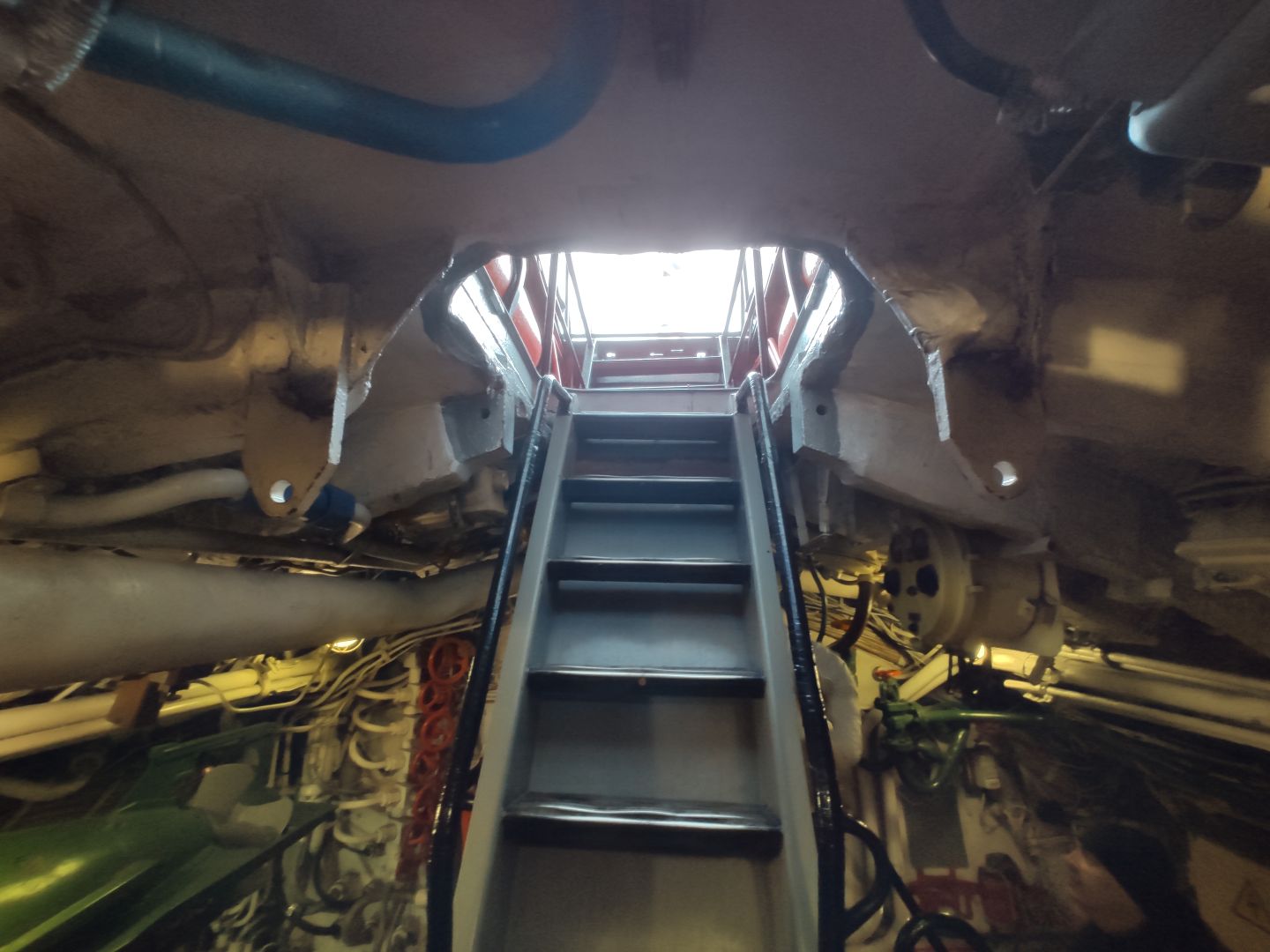 · Дизельный отсек: сердце, которое стучит. Спускаешься сюда — и попадаешь в царство механиков. Два огромных дизеля, которые давали лодке ход и заряжали аккумуляторы. Представьте этот гул в замкнутом пространстве! Рядом — гигантские электромоторы для бесшумного подводного хода. Высота позволяет стоять, но воздух наполнен памятью о машинном масле и напряженной работе.