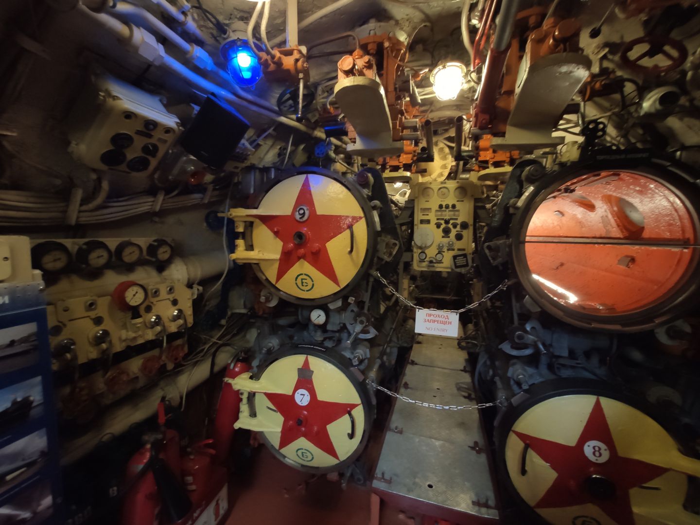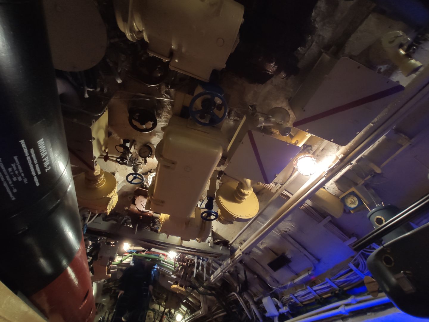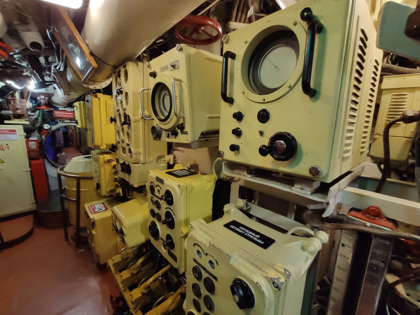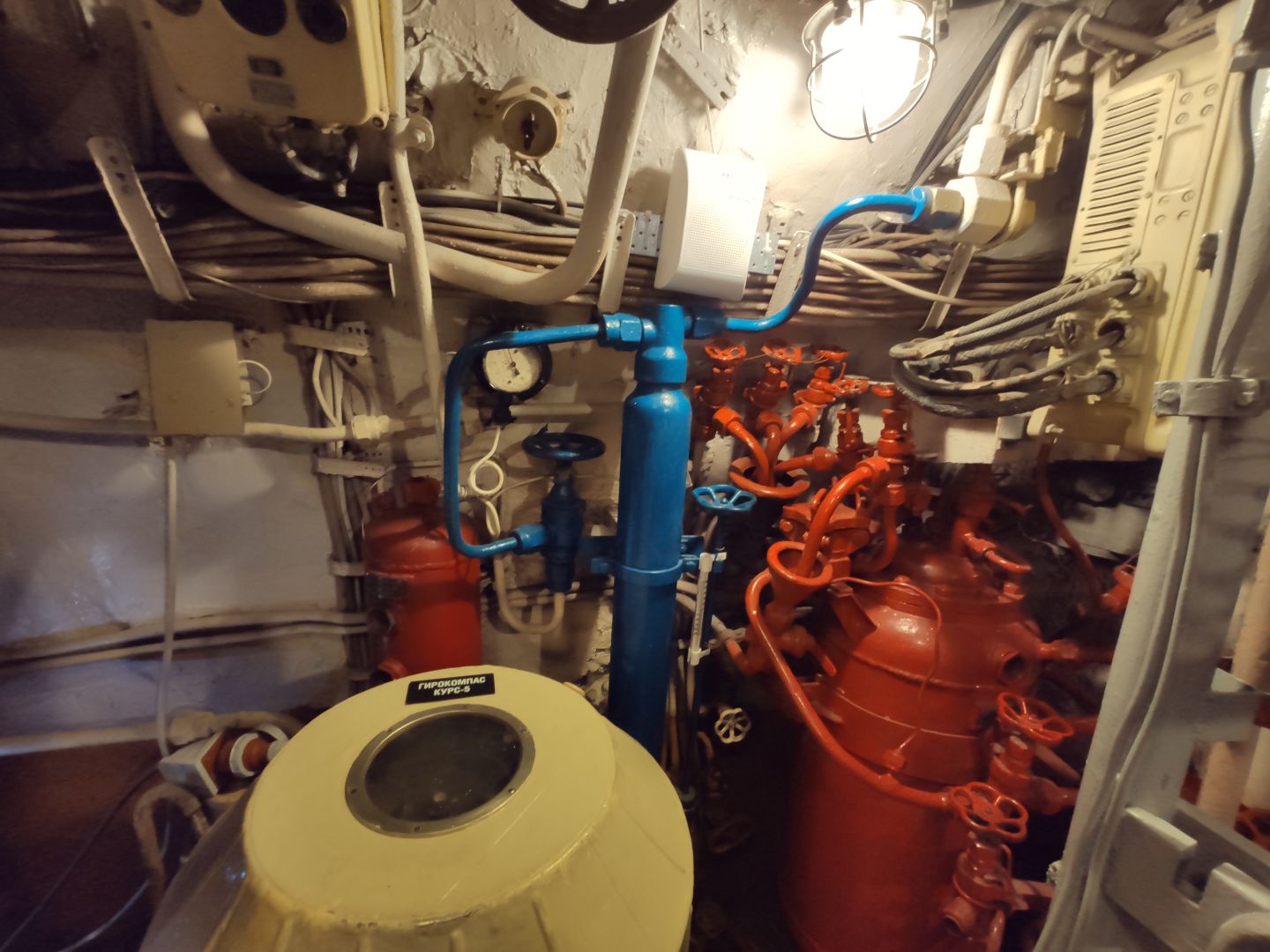 · Центральный пост: мозг субмарины. Это место — нервный узел всего корабля. Два перископа, как глаза лодки. Десятки вентилей, маховиков и кнопок. Штурвал горизонтальных рулей, с помощью которого лодка «ныряла». Здесь все настоящее, рабочее. Кажется, вот-вот прозвучит команда «Погружение!», и экипаж замернет у своих постов. И да, здесь тоже можно стоять прямо, но пространство заполнено оборудованием так, что чувствуешь себя частью сложного механизма.