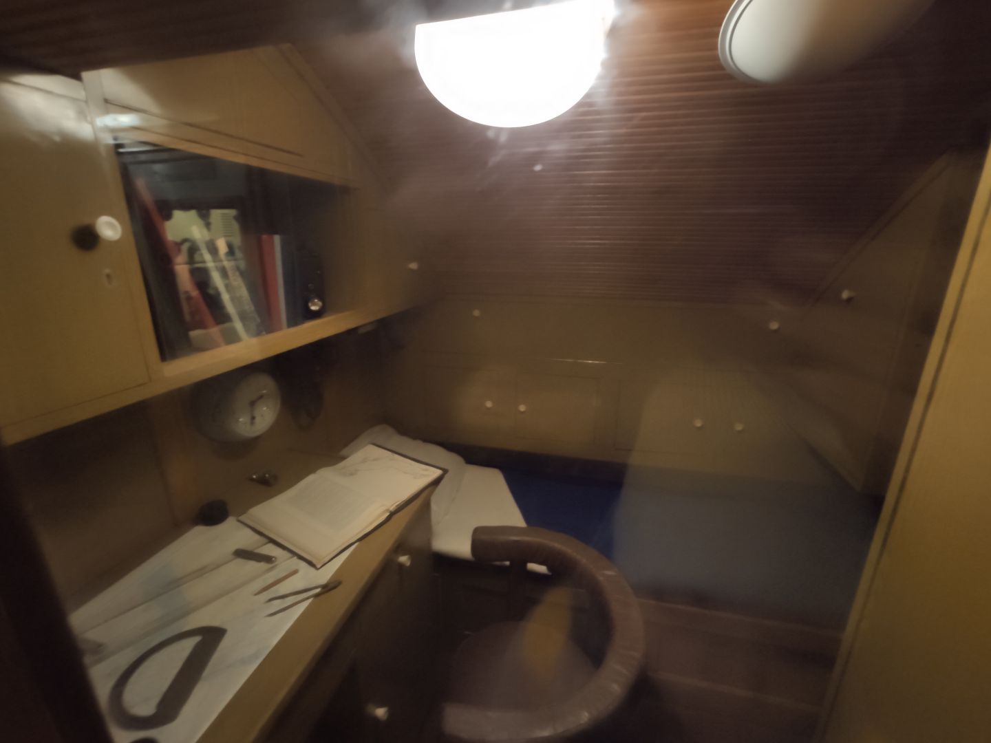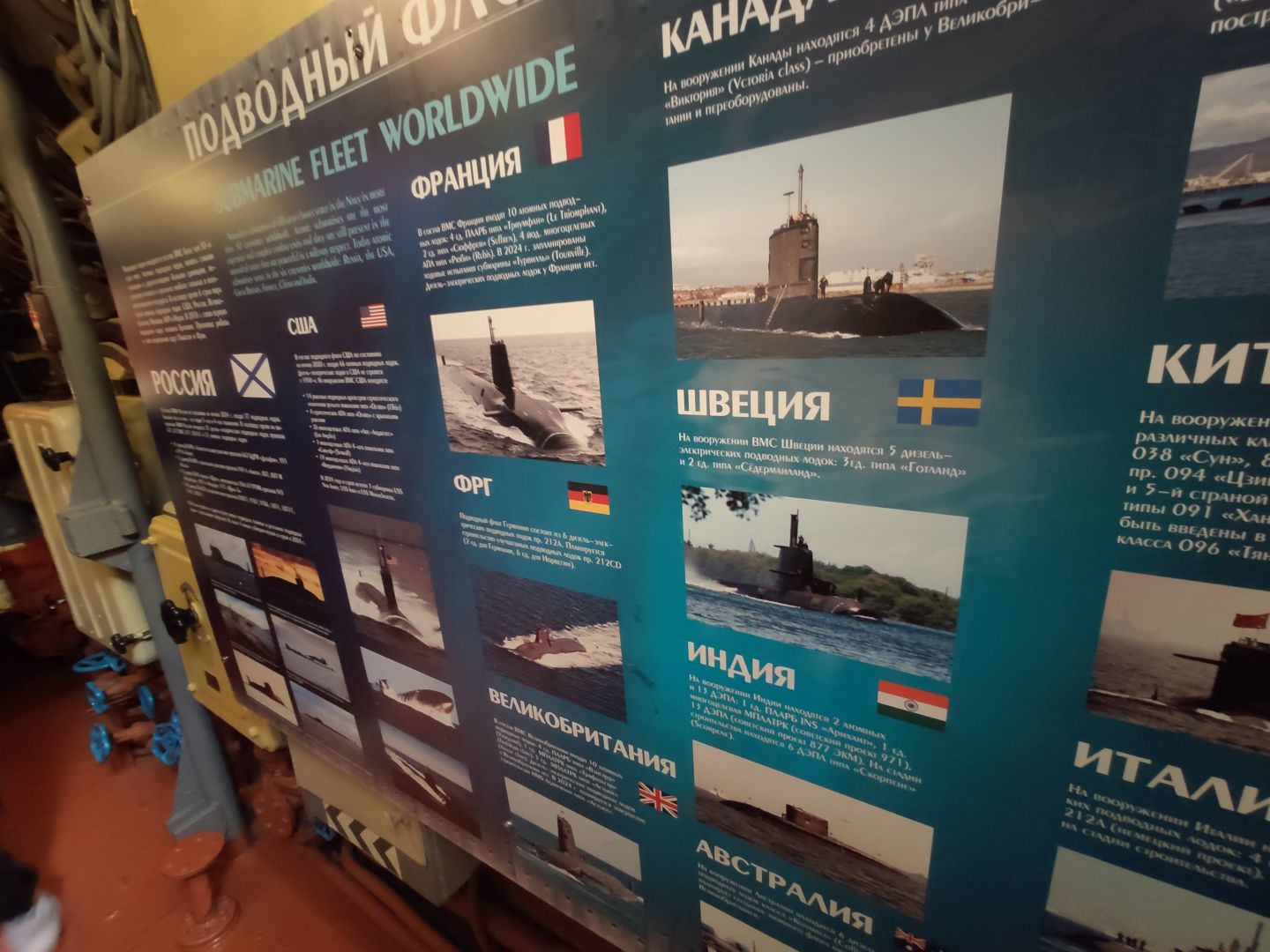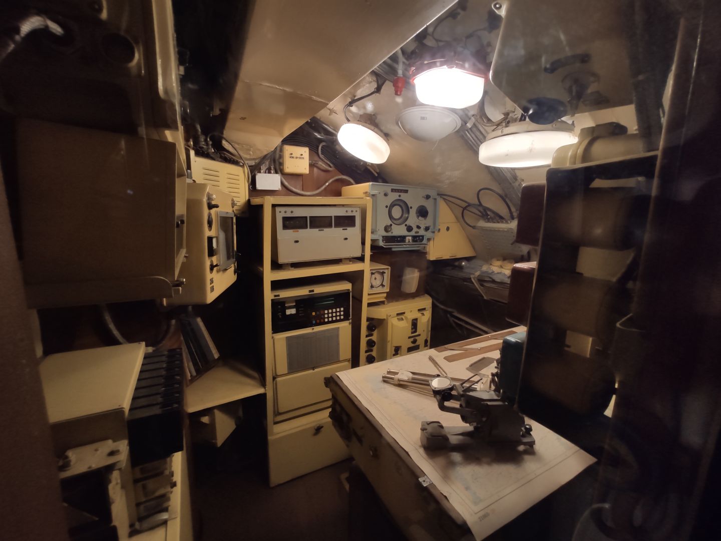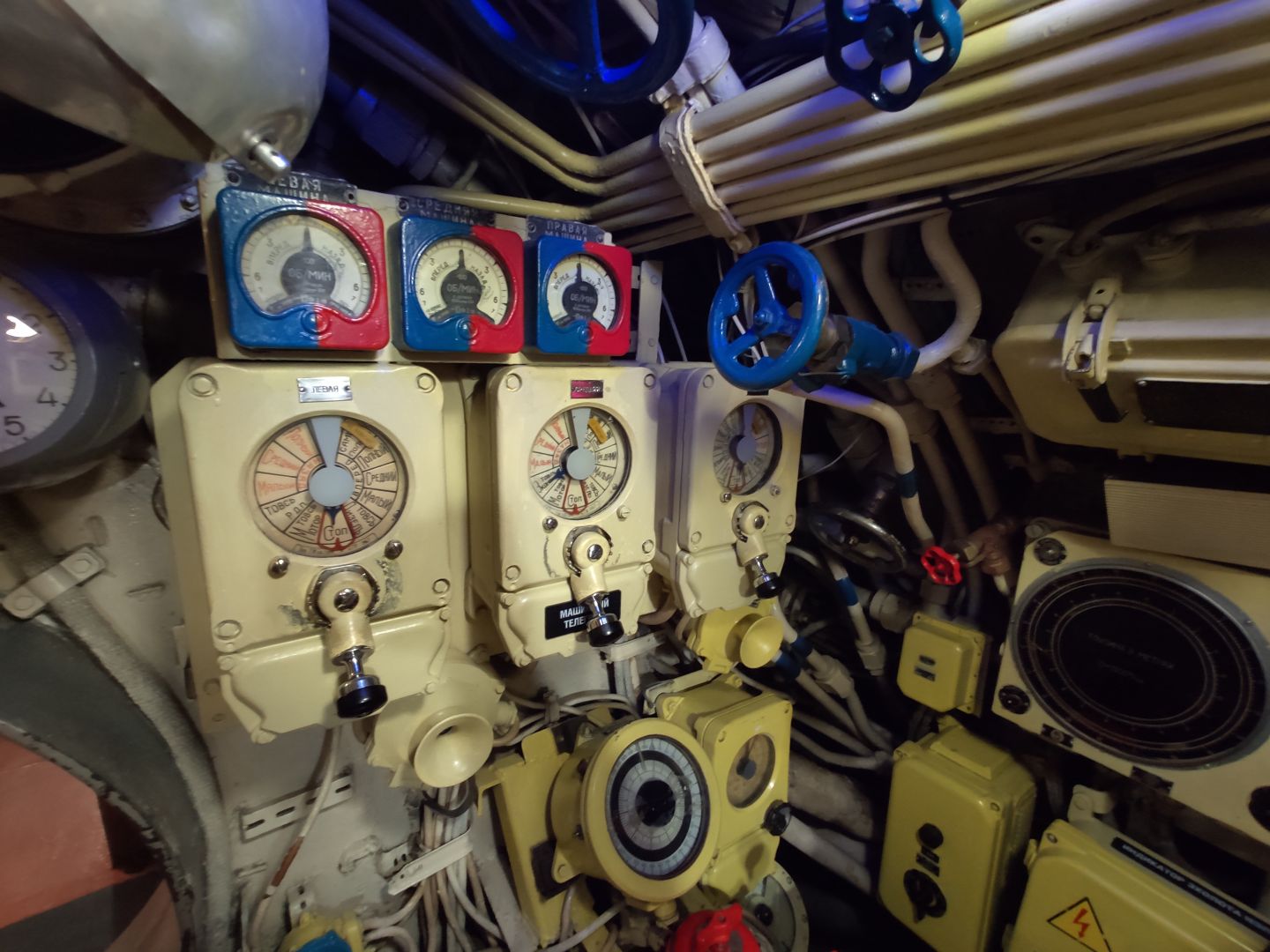 · Центральный пост: мозг субмарины. Это место — нервный узел всего корабля. Два перископа, как глаза лодки. Десятки вентилей, маховиков и кнопок. Штурвал горизонтальных рулей, с помощью которого лодка «ныряла». Здесь все настоящее, рабочее. Кажется, вот-вот прозвучит команда «Погружение!», и экипаж замернет у своих постов. И да, здесь тоже можно стоять прямо, но пространство заполнено оборудованием так, что чувствуешь себя частью сложного механизма.