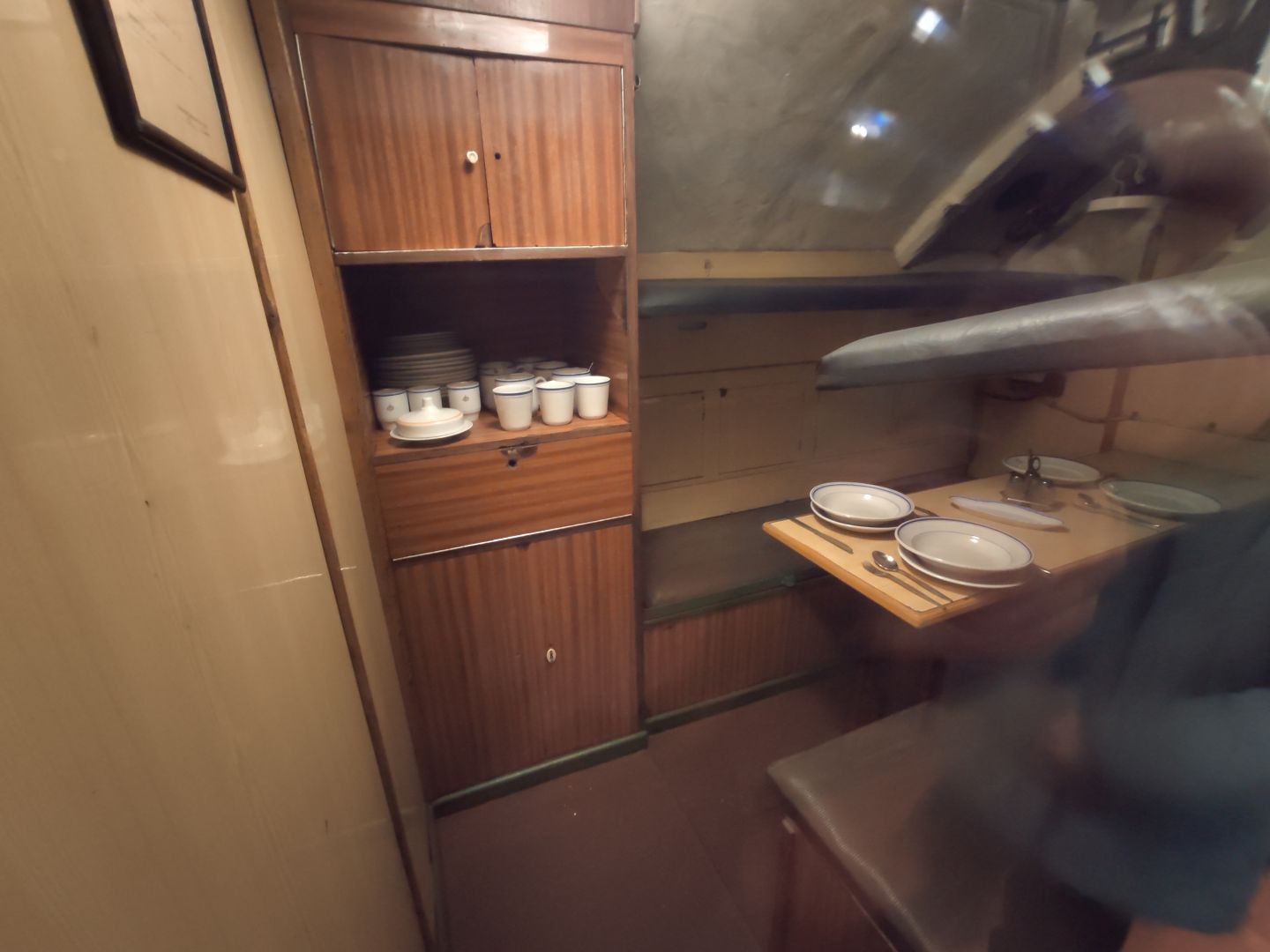 · Каюты и камбуз: жизнь в каморках. Каюты офицеров — это крошечные комнатки с железными койками и откидными столиками. Камбуз (кухня) размером с современный шкаф. Да, в каютах можно сидеть и лежать, но не сделать и пары шагов. Вся жизнь подводника — в этих железных отсеках, где нет личного пространства, где каждый сантиметр работает на выживание и выполнение задачи.